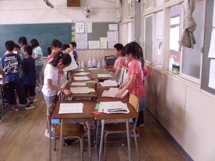 5年生の子どもたちは一泊移住を自分たちの力で楽しいものにするため、レクレーション、司会、しおりの各実行委員会に分かれて活動しています。
