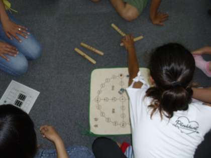 5年生は「ユンノリ」をしました。韓国・朝鮮のすごろくで、何度も振り出しに戻りながらも楽しく遊びました。
