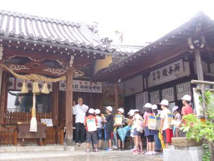 3年生が敷津浦校区内の神社やお寺に行ってお話を聞いてきました。歴史にまつわる話や、以前敷津浦の場所は埋め立ててできたところであったことなどを丁寧に教えていただきました。社(やしろ)の中に入らせていただくなど、貴重な体験をさせていただきました。
