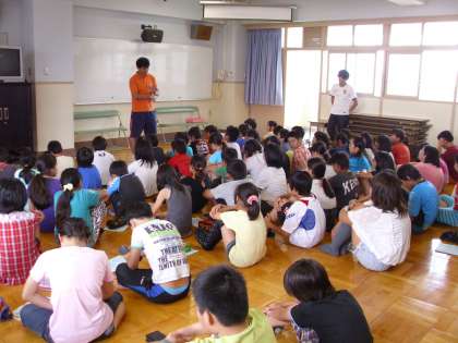 今日は5年生の子どもたちに一泊移住の説明会をおこないました。