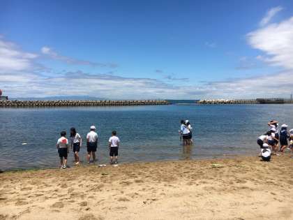 海と山に囲まれて、子どもたちは楽しい時間を過ごしています。海にはクラゲがいるみたいなので、気をつけてくださいね。