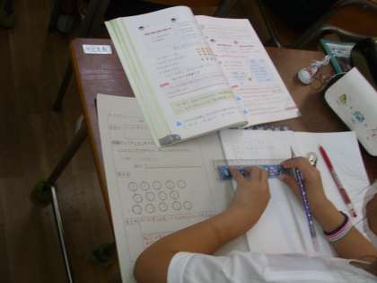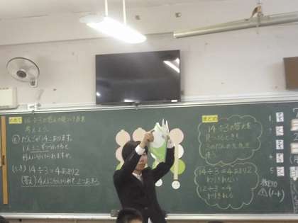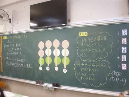 今日は3年生で、算数科「あまりのある割り算」の研究授業がありました。式の立て方や、九九を使った考え方などを学びました。