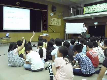 今日の2時間目、4年生では大和川河川事務所の方にゲストティーチャーに来ていただき