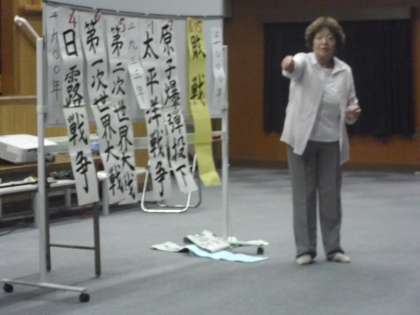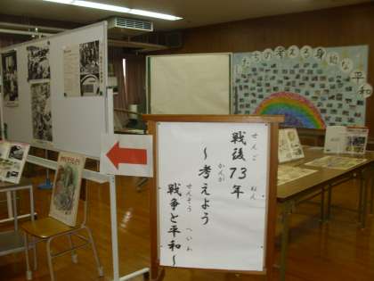 今日は平和人権登校日でした。たくさんの子どもたちが元気に登校してきました。全体の話の後、各学年に分かれて戦争についての展示物や戦争を体験された方のお話を聞きました。