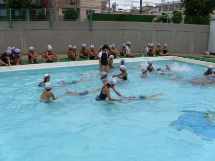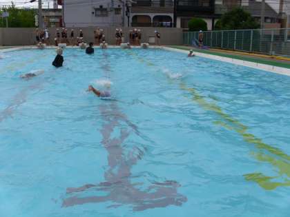 3時間目プールでは2年生と5年生がプール水泳をしていました。