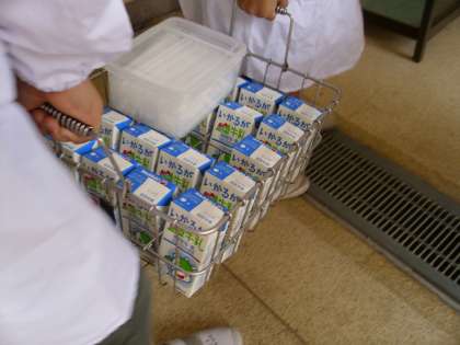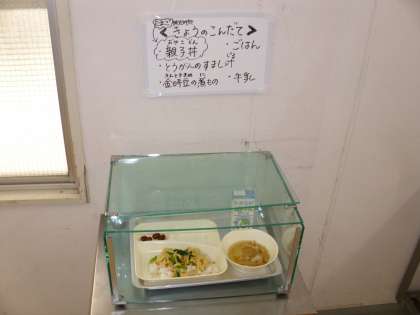 2学期も2週間ほどたち、子どもたちもすっかり学校生活に慣れてきたようです。給食の配膳もスムーズに行っていました。今日は牛乳、親子丼、冬瓜のすまし汁、金時豆の煮ものでした。ところで、2学期から牛乳がパックで登場しています。初めは戸惑いながら飲んでいた子どもたちも今ではすっかり慣れたようです。