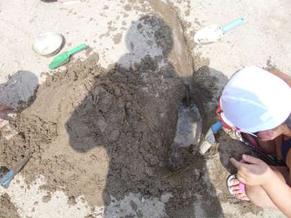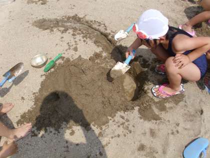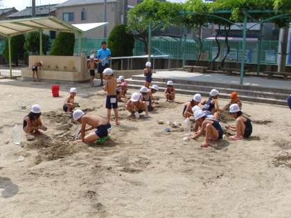 砂場で山をつくったり、水を流して川をつくったりしました。