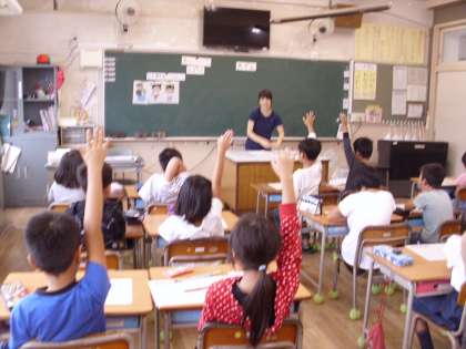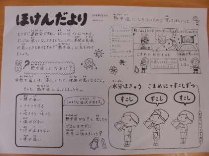 今日は9月3日から実習に来ていた先生の最終日です。熱中症についての保健だよりの作成と、お話をしてくれました。子どもたちはしっかりと手を挙げて答えることができました。