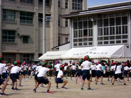 台風のため延期になっていました運動会が2日(火)にありました。今年のめあて「力をあわせてレッツゴー」の通り、各学年力を合わせて競技や演技を行うことができました。1年生はポンポンをもっての演技≪おどLet`s DANCE!!≫は1年生らしくとってもかわいい踊りでした。2年生はカラー手袋に中国風の帽子をかぶっての≪笑って!〜笑一笑〜≫。カンフーアクションのようなダンスを取り入れて、とてもかっこよかったです。
