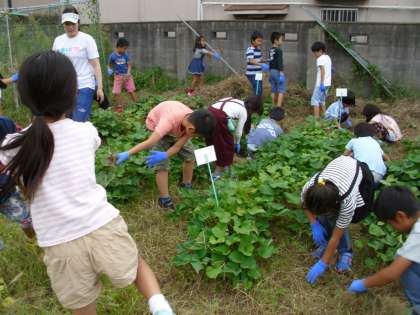 学習園で2年生が畑周辺の草抜きをしていました。春に植えたサツマイモの収穫に向けての準備です。お芋が大きく育っていたらいいですね。