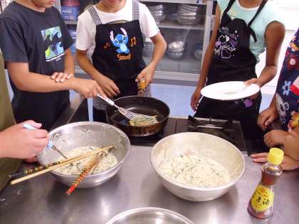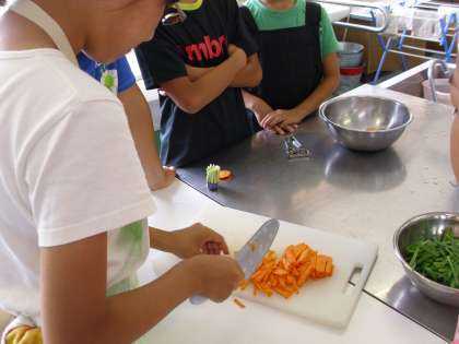 「猫の手」に気を付けながらニンジンを切ったり、チヂミをひっくり返すのに挑戦したりと楽しそうでした。