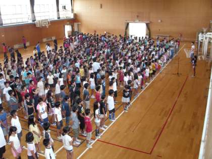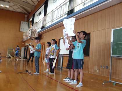 校長先生のお話や6年生の作文の発表などをおこないました。