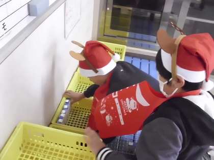 あと給食も3日になりました。給食委員会の子どもたちは、サンタクロースに扮してお仕事をしています。給食調理員さんの提案だそうで、今週いっぱいこのコスチュームで活動するそうです。また、クリスマスバージョンの掲示を調理員さんがしてくれています。また見に来てくださいね。
