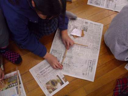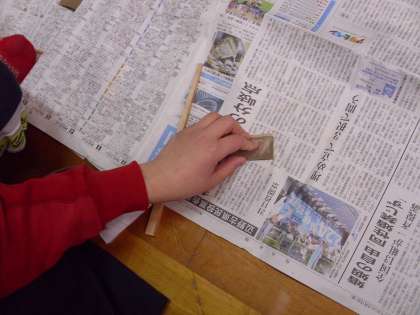 26日の火曜日に「平林会」の方々にお越しいただき、箸づくり体験をさせてもらいました。体験の前に、クイズ形式で木にまつわるお話もしていただきました。子どもたちは一生懸命紙やすりなどを使って形を整え、くるみの油できれいに塗っていました。環境問題について考える良い機会となりました。「平林会」の皆様ご協力ありがとうございました。