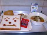今日は個別対応献立の日でした。牛乳・食パン・いちごジャム・あげギョーザ・中華煮・...