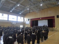 臨時児童集会で、来週に行う「卒業お祝い集会」のリハーサルを行いました。司会の言葉...