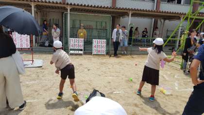 PTAのお店は「ストラックアウト」「スマートボール」「お豆運び」でした。毎年恒例の「服のリサイクル」も大盛況でした。たくさんの笑い声が響き、子どもたちも大人もいっぱい楽しむことができました。今年度からサポーター制度となりましたが、たくさんの保護者の方よりお手伝いをしていただき、みなさんからも「楽しかったよ。という声も多く聞かれ、子どもたちも喜んで大成功だと思います。