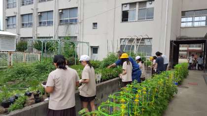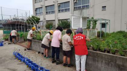 6時間目の委員会の時間に「花咲かせ隊」の方々が児童と一緒に花の苗植えをしてくださいました。マンツーマンで教えてもらえて子どもたちも満足気な表情をしていました。