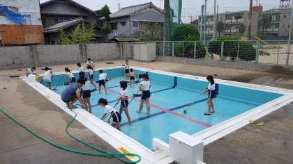 一方、運動委員会の人はプール清掃をがんばっていました。ピカピカにしてくれてありがとう!