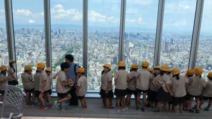 今日3年生はハルカスと阿倍野防災センター「タスカル」へ社会見学に行きました。よいお天気で東西南北すべての方角とも大阪の街がよく見えました。面白いことに同じ大阪なのに方角が違うだけで風景は全然異なるのですね。