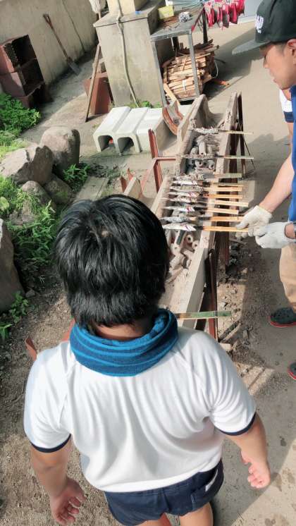 とった魚はその場ですぐに塩焼きにしていただきます。