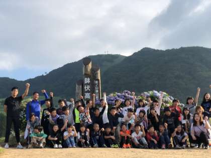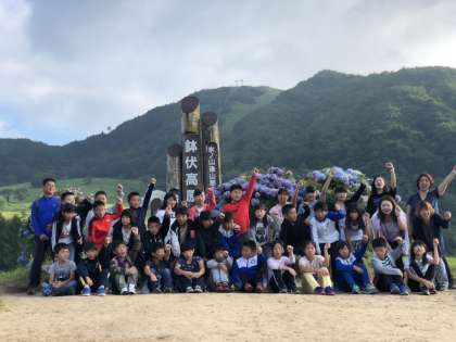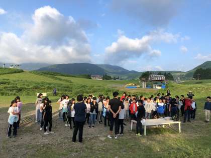 涼しいくらいの夜、ぐっすり寝たみんなはラジオ体操の後、朝の散策を兼ねて記念撮影ポイントへ。