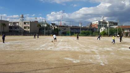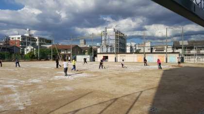 来週から本格的に始まる運動場での運動会練習に向けてのグランド整備の一環として、運動場に「にがり」を巻きました。砂がしっとりとしてホコリが立ちにくくなりました。
