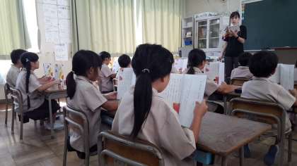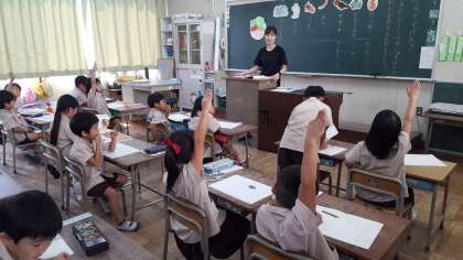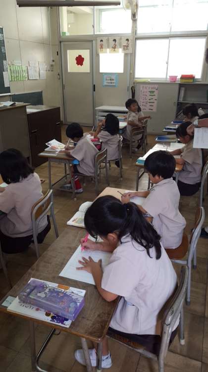 4時間目、「サラダで元気」の授業がありました。初めに長い音読をしていましたが、集中を切らさず、最後まで読んでいた姿にとっても感心しました。サラダにどんなものを入れるとよいか、本文を読み返したり、登場した動物たちの気持ちになったりしてしっかりと自分の意見を言っている姿も大変すばらしかったです。毎日の音読をがんばっているのだなあと思いました。
