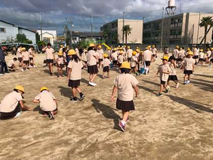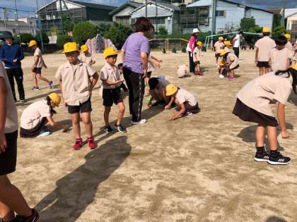 今日の児童集会では、運動場に落ちている石拾いをしました。運動会で自分たちが使う運動場なので、みんな一生懸命石を拾っていました。
