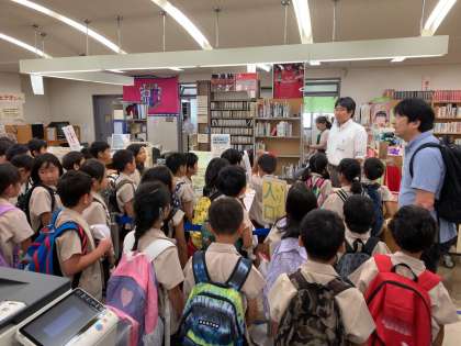 事前に社会科のノートに質問をまとめ、図書館の方にインタビューをしてお話を聞いたり、図書館で本を読んだりと、本に関わることを学習しました。