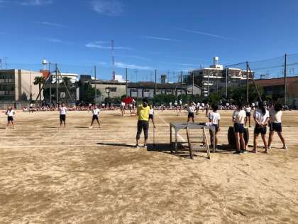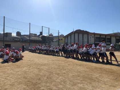 次に、昨日に引き続き応援団の練習をしました。座席に座っている児童の応援の声も大きくなってきています。