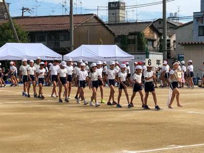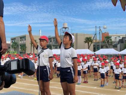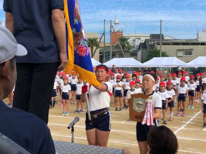 校旗を先頭に、優勝旗、準優勝盾と続き、6年生から1年生までが力強く行進しました。選手宣誓も力強く元気な声で、堂々としていてかっこよかったです。