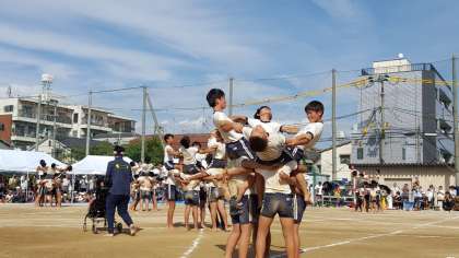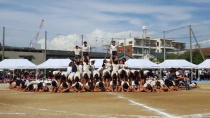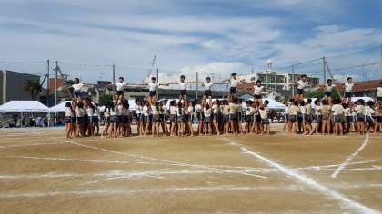 競技・演技の最後を飾るのは5・6年生による組体操「君という名の翼で名〜仲間を信じ乗り越えよう〜」。