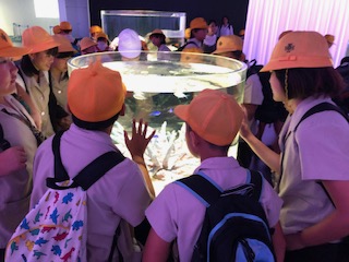ニフレルでは、様々な魚を鑑賞したり、ドクターフィッシュの水槽に指を入れたりいろいろな経験をしました。また、大きなワニやホワイトタイガーもいて、みんな大興奮でした。