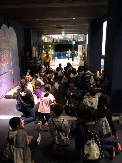 小雨が降ってきました… ペンギンタッチの体験は玄関口に移動して実施して頂きます。