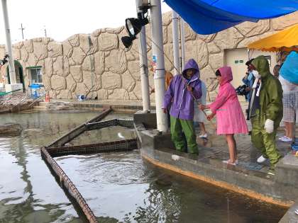 施設の方に手を添えていただきますが… 釣れると〜こうなります。