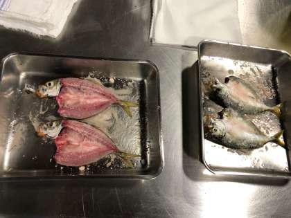 アジの表も裏も塩をつけています