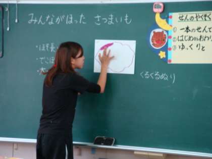 全員が完成したら、「あつまれ!おいもランド」という題材で、大きなおいものまわりにみんなで集まって何をして遊びたいか考えていきます。