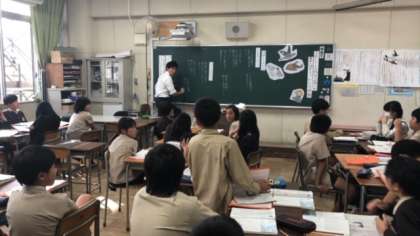 放課後、講師先生を招いて、授業を題材として、教職員で研修会を行いました。今後の教科指導に活かしていきます。
