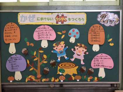 11月の保健室掲示は、「かぜにまけない体をつくろう」です。