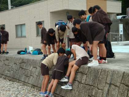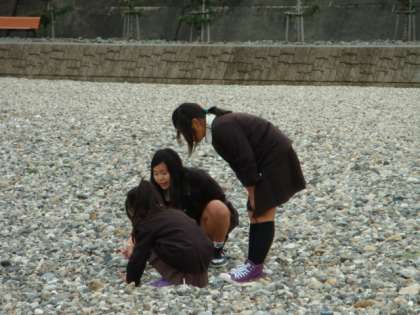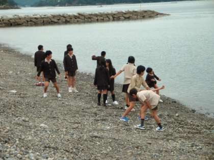 食べた後は、砂浜で生き物を見つけたり水切りをしたりして遊びました。