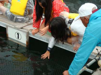 1年魚はまだ小さく、手で餌やりができますが、3年魚になると歯が強くなり、かまれると大けがになるそうです。