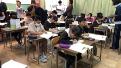 放課後、講師先生を招いて、授業を題材として、教職員で研修会を行いました。今後の教科指導に活かしていきます。