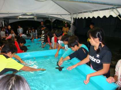 次にサメやヒトデ、なまこなどが入った水槽の周りに集まり、触ることができました。