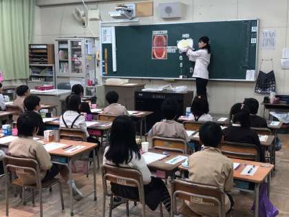 本日、歯科衛生士さんと校医さんに来ていただき、歯みがき指導をしていただきました。