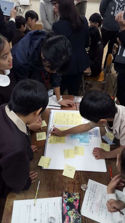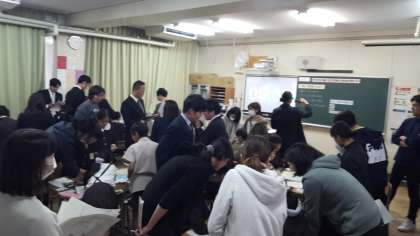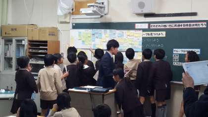 4年生は今日は市の研究授業(社会科)がありました。「大阪府の特色ある地域のくらし」の題で、自分たちがこれまでに調べてきた大阪府内の各自治体の特色を付箋に書き、それらをグループで分類化していきます。班で相談するとなると大変多くの付箋が集まっていましたが、付箋を貼り替えて分類していくとその中から大事なことやキーワードがそれぞれうまく見つかってきたようでした。大阪府の中には多くの市がありますが、どこも住んでいる人々が協力して地域の発展に努めていることがよくわかりました。多くの他校の先生を前に、みんな緊張するも最後までよく頑張っていました!!