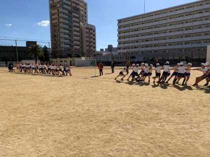 綱引きや大玉ころがしなど、和気あいあいとした雰囲気の中で進めることができました。これを機会に中学校に進んでも仲良く過ごせるといいですね。