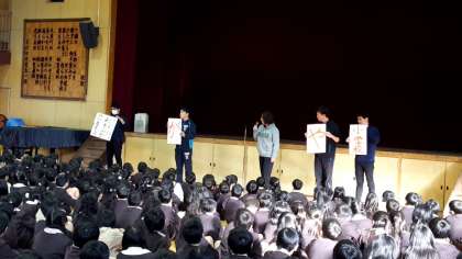 今日の終業式では「冬休みを安全に」の題で「かがやかるた」でのお話がありましたので紹介します。