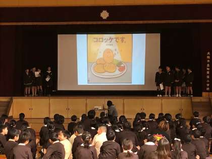 図書委員会は、各学年に向けたお勧めの本の紹介、図書委員会からのお願いを発表しました。
