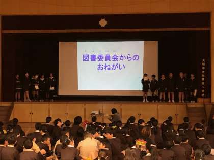 今日の児童集会では、1月のお誕生日集会と図書委員会発表がありました。